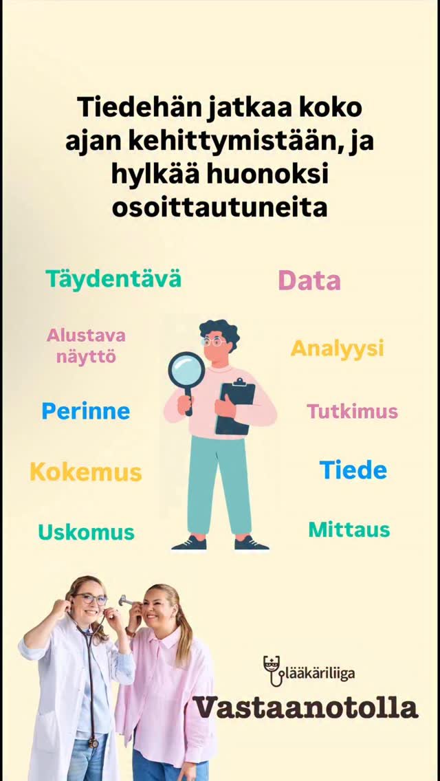 TikTokissa kohderyhmämme ovat 13-18 -vuotiaat nuoret. Lyhytvideoillamme jaamme tietoa terveydestä ja lääkärin työstä, oikaisemme vääriä käsityksiä, vastamme ajankohtaisiin kysymyksiin sekä vähennämme nuorten pelkoa ja huolta.
